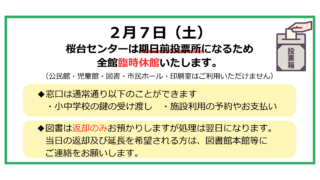 お知らせ 【期日前投票所】2/7(土)桜台センターが休館いたします。