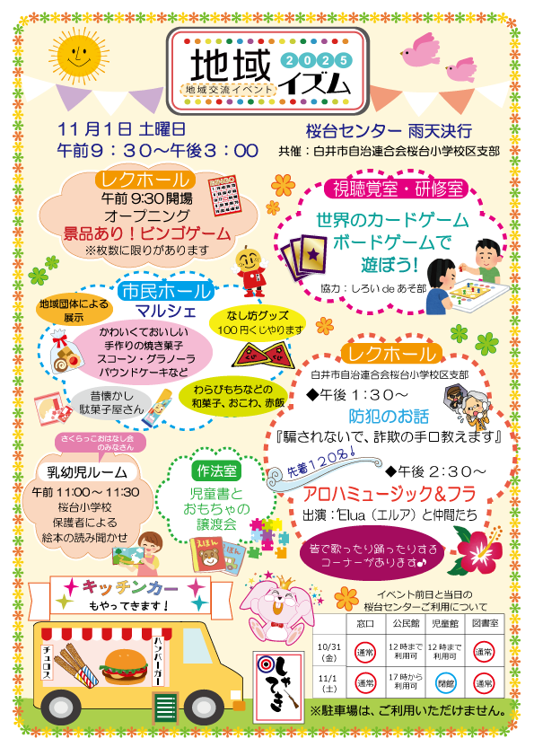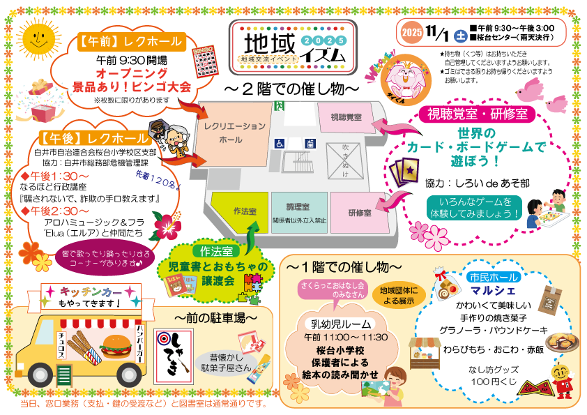 白井市桜台センターにて地域交流イベント「地域イズム2025」を開催します。